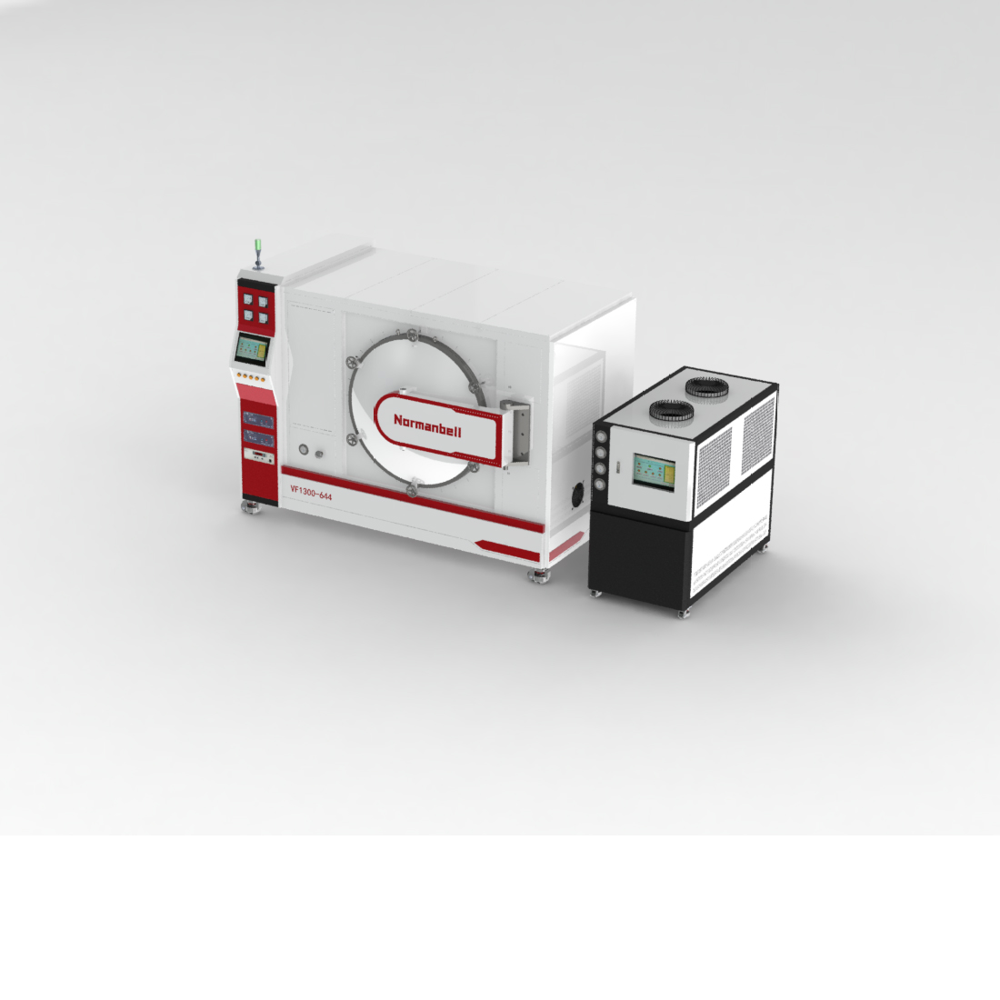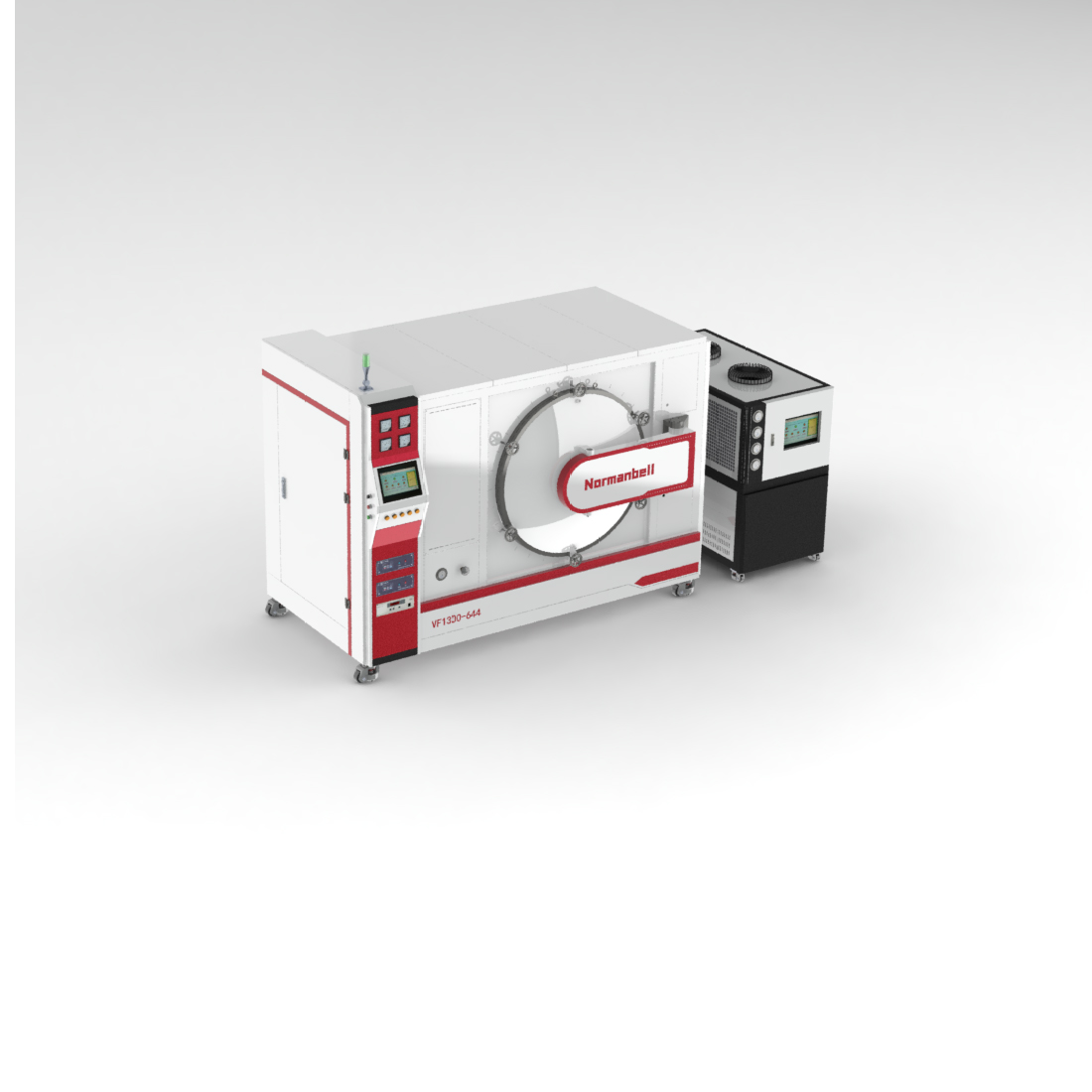 1、爐型結構:臥式,單室,爐體爐門采用雙層水冷,前開門結構。由爐體、加熱室、真空系統、水冷系統、電控及供電系統組成。